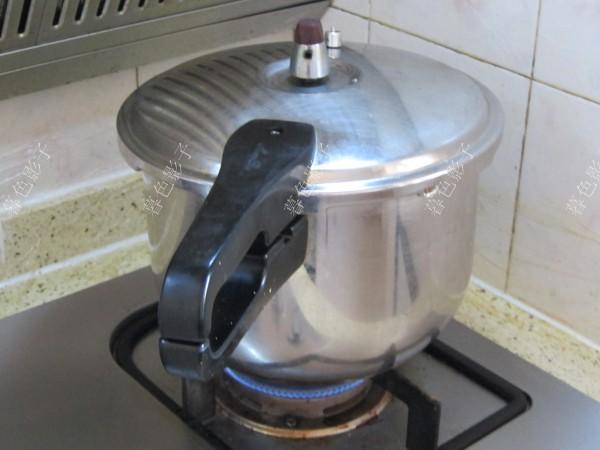 8开大火煮到锅排气后上安全阀,煮10分钟左右关火。待锅完全冷了,取下安全阀开锅。