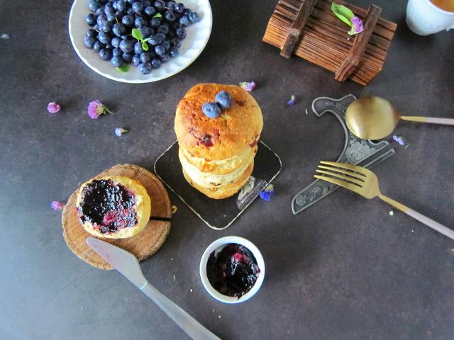 司康饼不是那么的甜,很可口,搭配红茶和蓝莓酱口感特别棒!喜欢就试下,比蛋糕和面包都好做。蛋糕要打发一些技巧,很多人不想做了,面包要出膜拉丝,没有专业工具很难达到出膜。司康饼不一样了,简单和面松弛一会就进烤箱了。