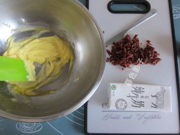 食材;司康饼预拌粉500克,鸡蛋一个,牛奶200毫升,黄油80克,蔓越莓40克。