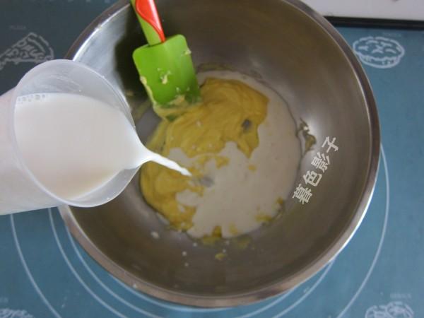 3,黄油里边把加牛奶加上,然后再混合。