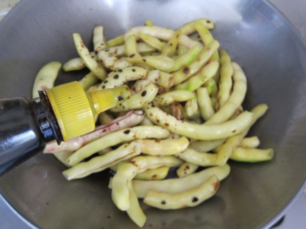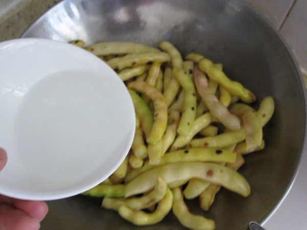 1,植物烧热, 用大葱爆出香味,豆角下锅翻炒。