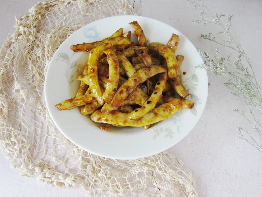 贴士;炖豆角需要加适量的清水。不吃辣可以放豆瓣酱。