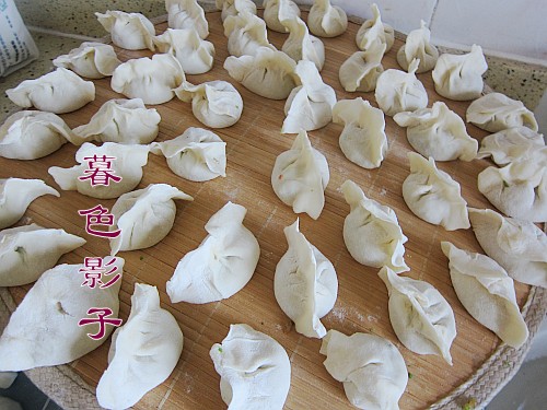 5,包好的饺子放在盖帘上边,每一个之间留有空隙,免得粘连。