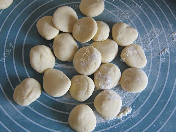 3,松弛好面团要分成大小一致的面剂子,擀成薄厚大小一致的饺子皮。