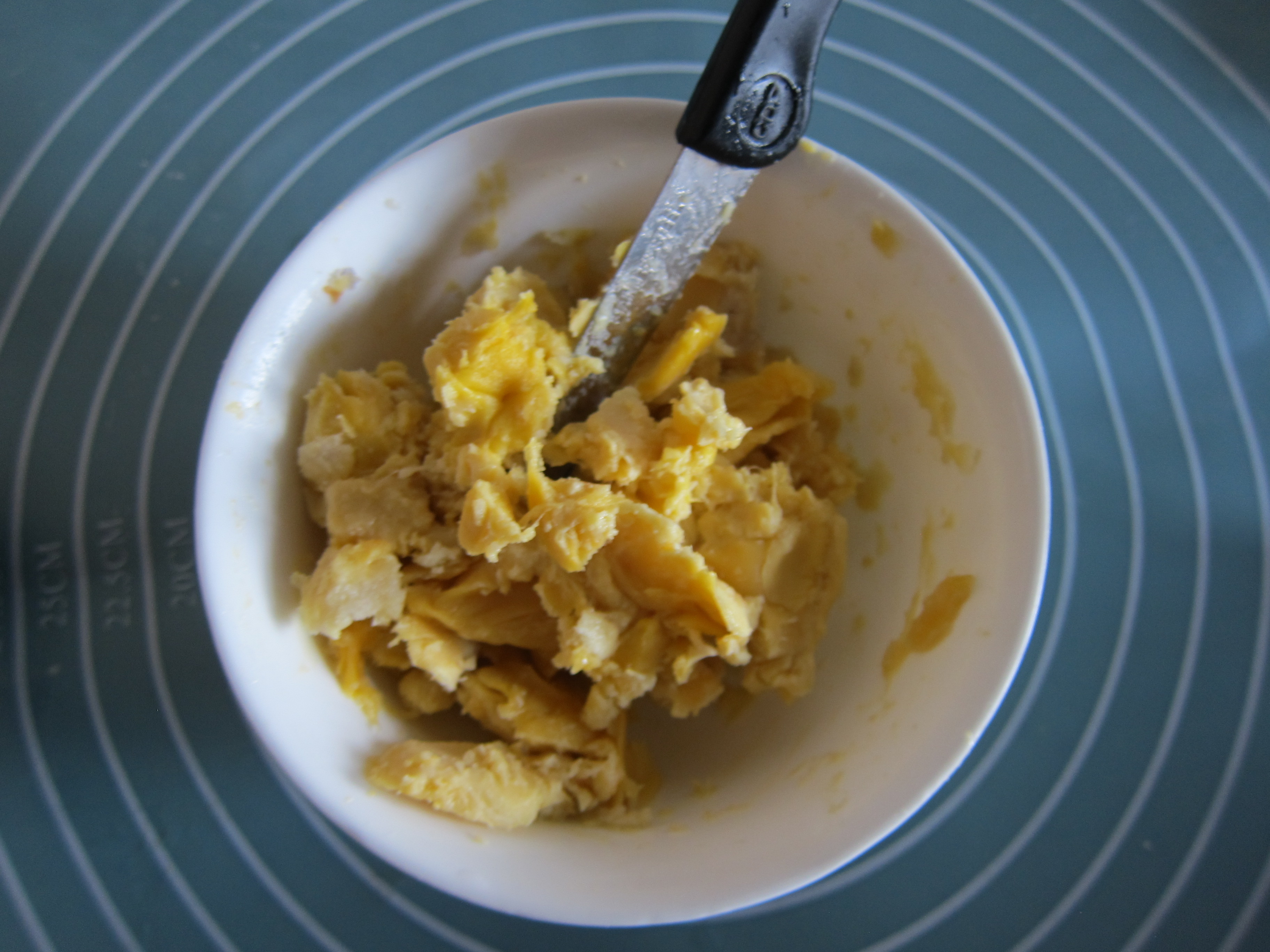 制作步骤;1,将榴莲肉切下来,直接用刀切下就行了。不用加糖,猫山王榴莲超级的甜腻。如果是其他榴莲可酌情添加甜度。