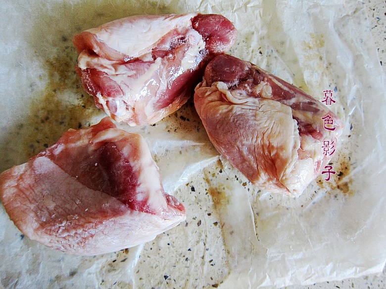 制作步骤;1,冻的鸡肉解冻洗干净备用。