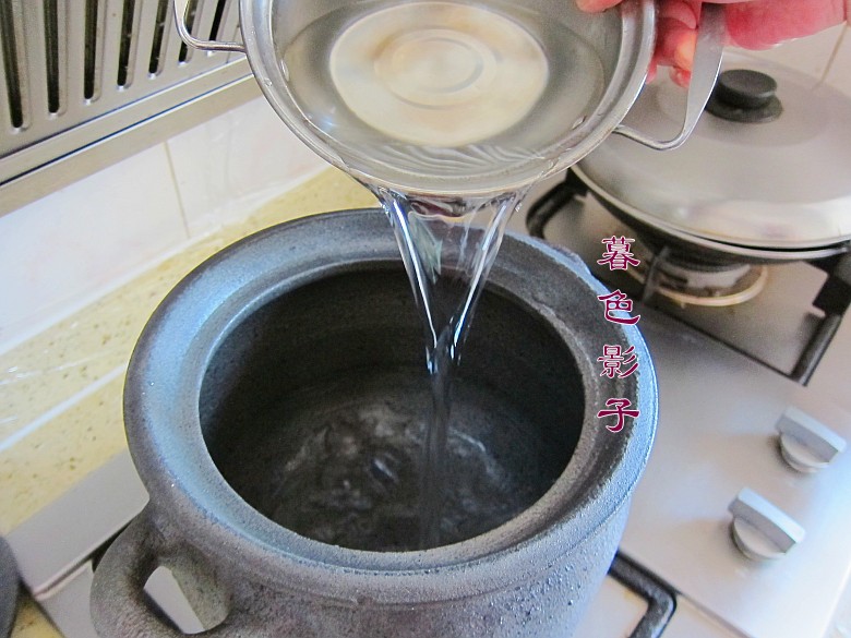 3,砂锅内加清水多半锅,4升的锅,看自家的需要加水。