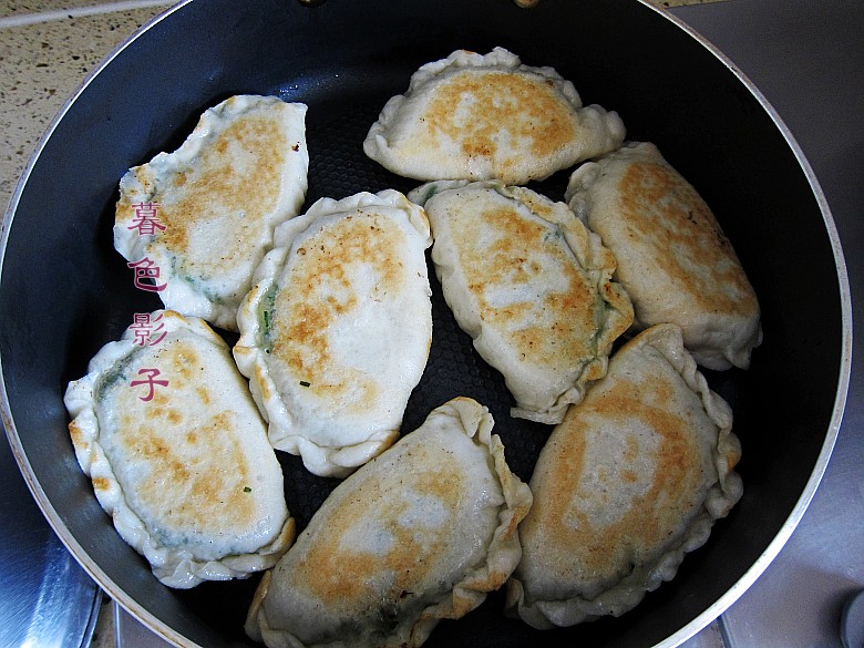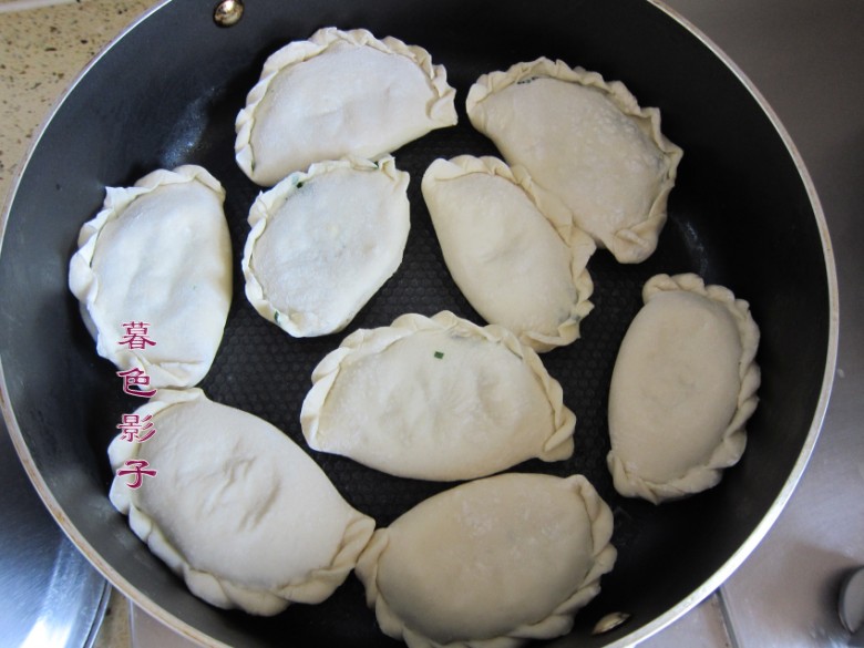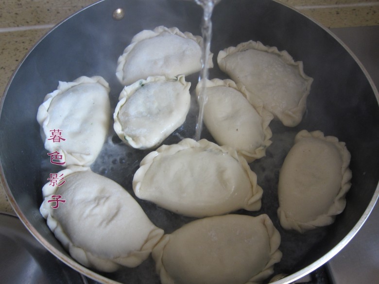 6在煎盒子的过程中撒一点的水盖,把锅盖上,这样韭菜盒子面皮熟的快,盒子的面皮很软。