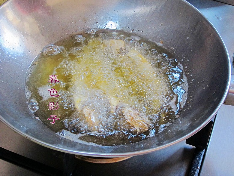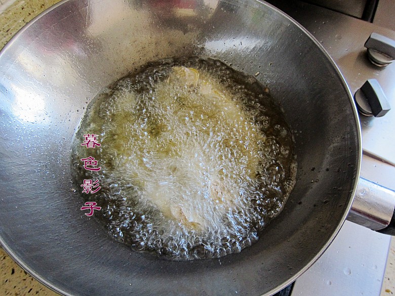 5,油花翻滚,记得翻几次鱼,颜色变得金黄就出锅。