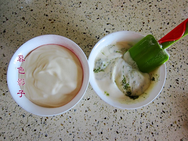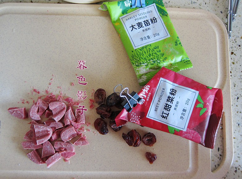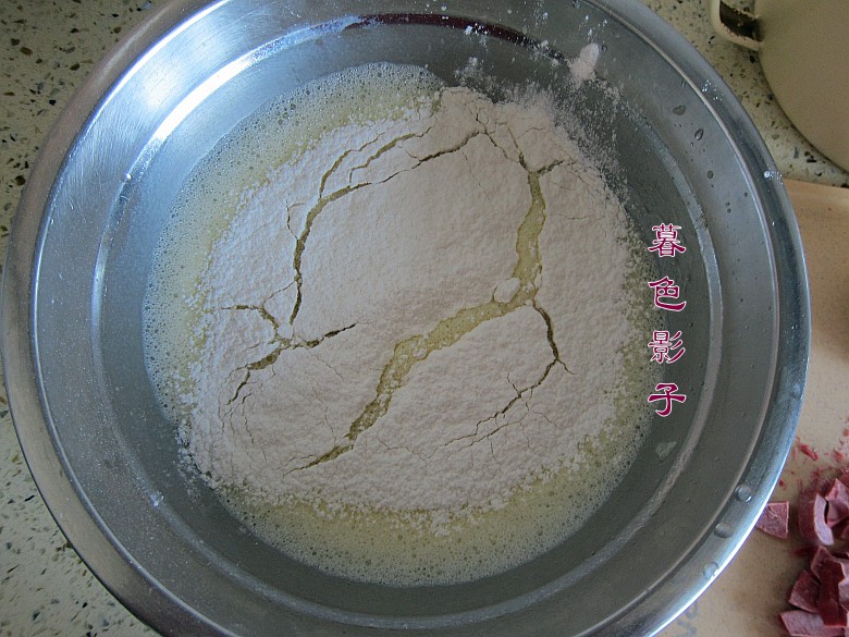 5,取出部分混合好的蛋液,加入果蔬粉混合。