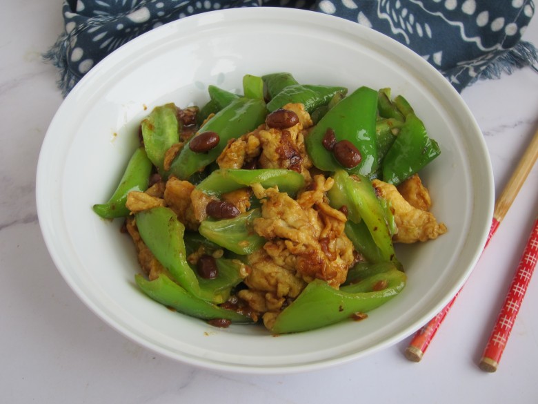 炒得小辣椒变色了,这时候加上我们说的1勺黄豆酱就行了,翻炒一下出锅了。