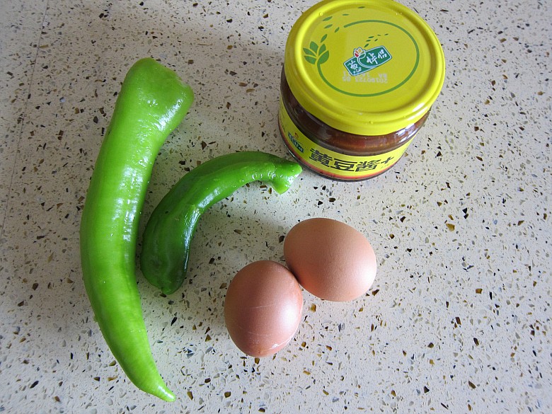 食谱;酱炒辣椒鸡蛋。食材;鸡蛋2个,植物油2勺,辣椒2个,黄豆酱1勺。