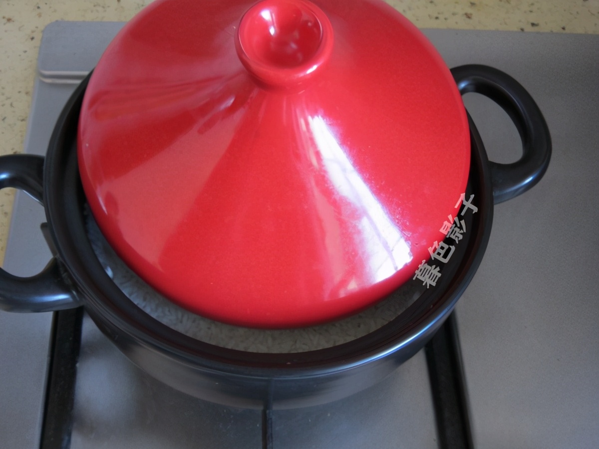 开始煮饭了,锅盖别盖严了,小火煮开锅。