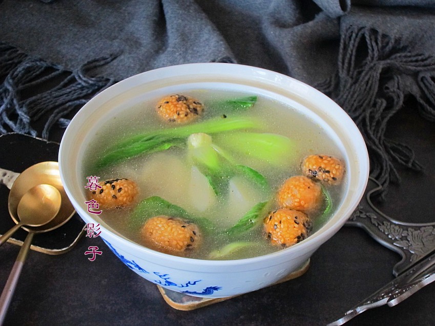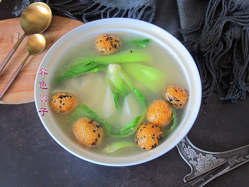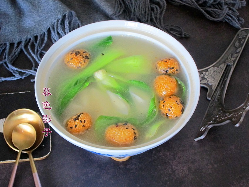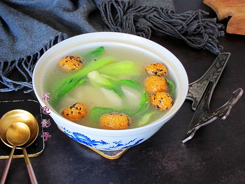 装碗里的汤再放几颗小麻团,口感非常的好吃,喜欢汤的可以试下哈。