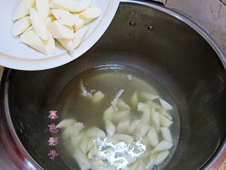 我用煮肉的汤,直接把切好的山药放进汤里。