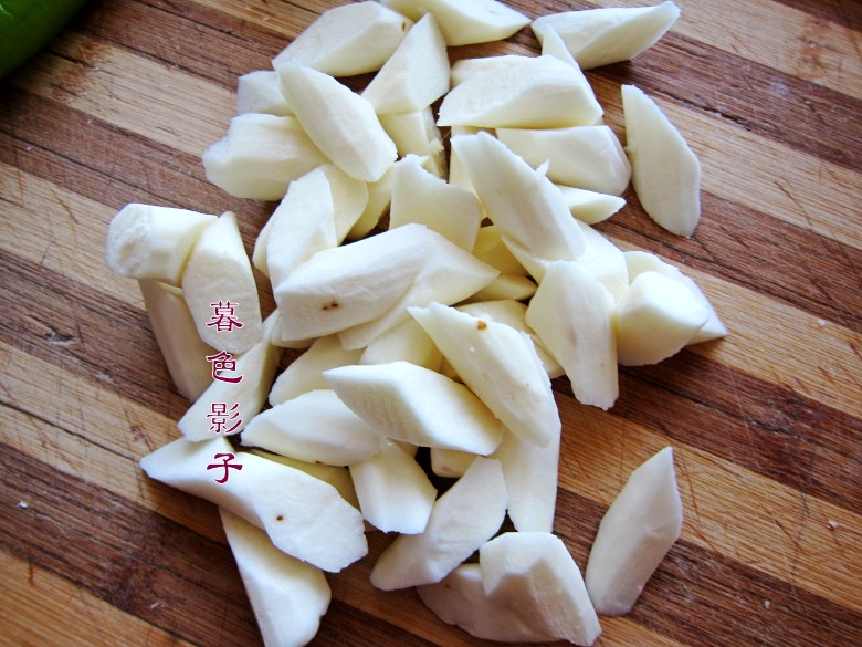 制作步骤;将山药削皮,记得戴手套操作了。山药会使得很多人过敏,操作不当手发痒很难受。山药的黏液很多要多冲洗几次,再切成小段备用。