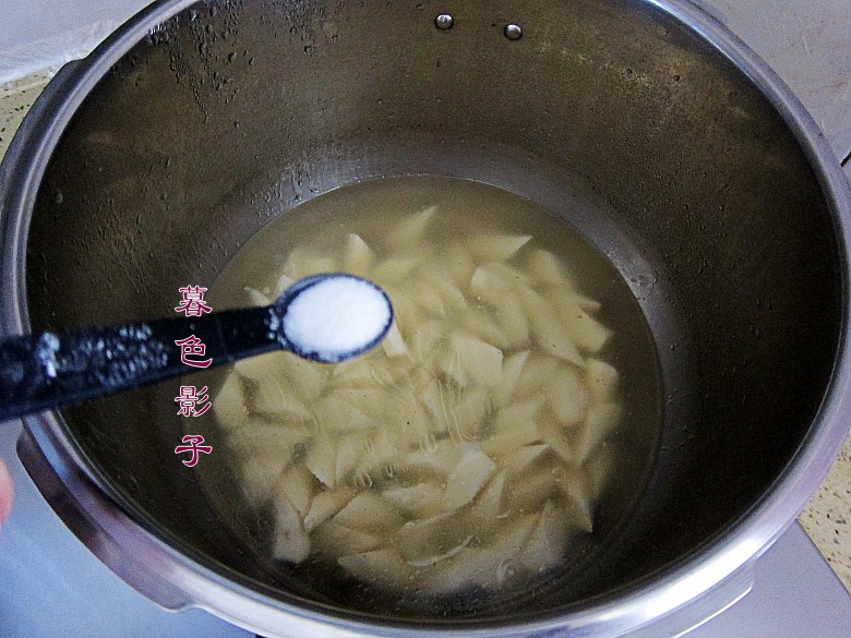 然后加1勺盐。再加油菜,烫一下就出锅了。这里忘记拍了。