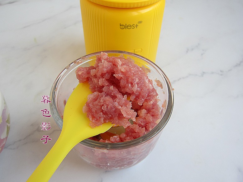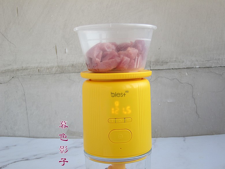 制作步骤;1,最近拔草的1款称重料理机,很实用。今天用来称重食谱所需的猪肉,平时就是切一块肉,现在好了,知道这次用肉量121,5克。用来给孩子做辅食或者烘焙的配料更准确和方便。