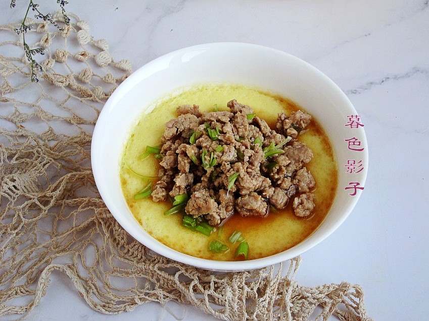 食谱;肉沫蒸蛋羹。需要的食材;鸡蛋2个,肉121.5克,植物油1勺,盐少许,生抽1勺,葱花适量。