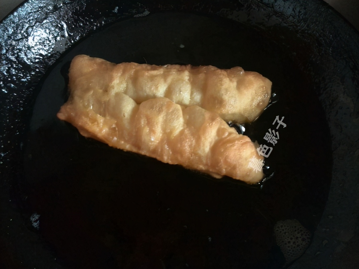 6,油温不要太高了。如果不确定就先试炸一个,再调整好温度,油条先用手拉一下再炸,等油条全部浮起来了,翻一个面再炸,炸的油条上色控出油,酥脆可口的油条开吃了。