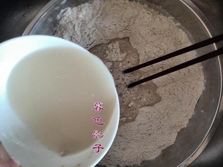 2,酵母粉用温水融化了。然后在和面,这样发酵的更快一些,这是我自己的经验哈。