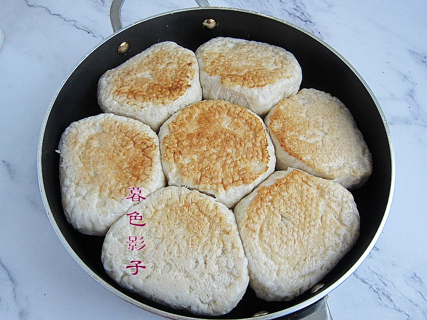 7,烙熟的馒头要及时的取出来,我这个取的晚了,蒸汽漏到锅里了,馒头底子已经有水了。