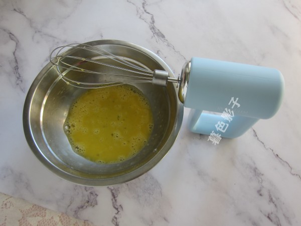 将1个全蛋放在容器里,用打蛋头打3秒就行了。