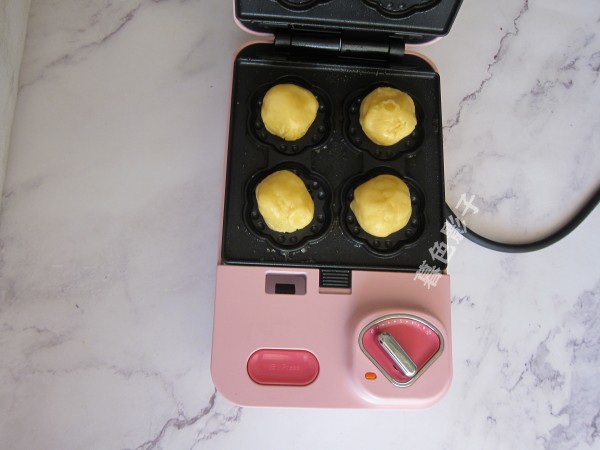 试验好几次25克左右,面团直接放模具里边,然后扣上盖子。做饼干不用刷油。烤出来效果杠杠的好。