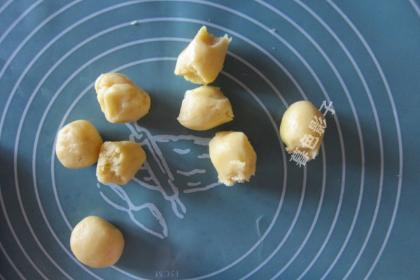 将松弛好的面团,分成小面团,多了就会冒出模具花盘,一共做了12个。