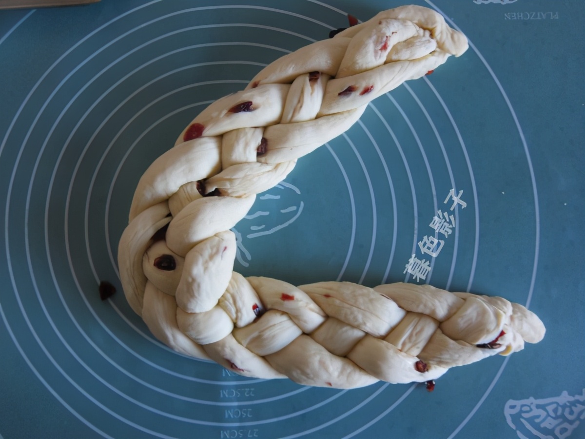 把蔓越莓干搓进来,4条准备编四股辫子。