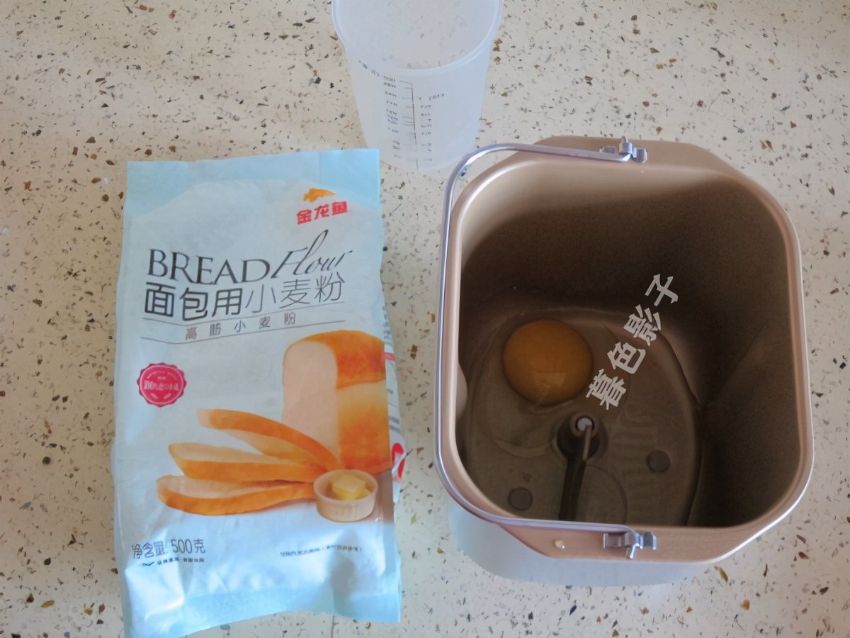 制作步骤;将全部的食材准备好。把鸡蛋和植物油温水,放进面包桶内搅打混合。