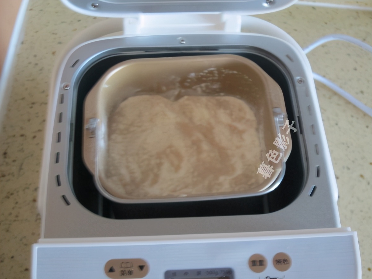 把面包桶放进面包机开始和面,设置和面20分钟左右就行了,不同的面包机时间不同。