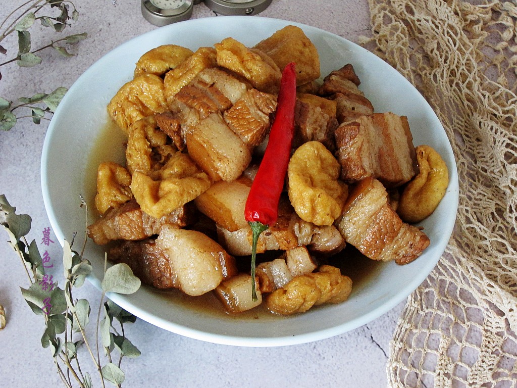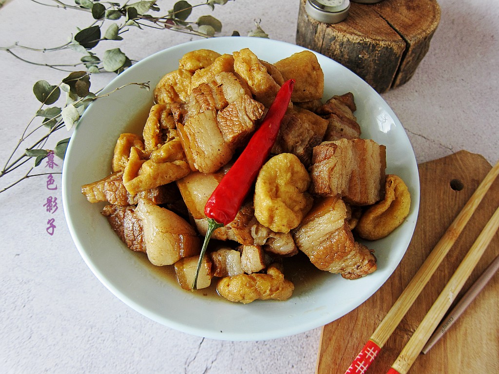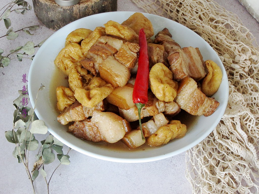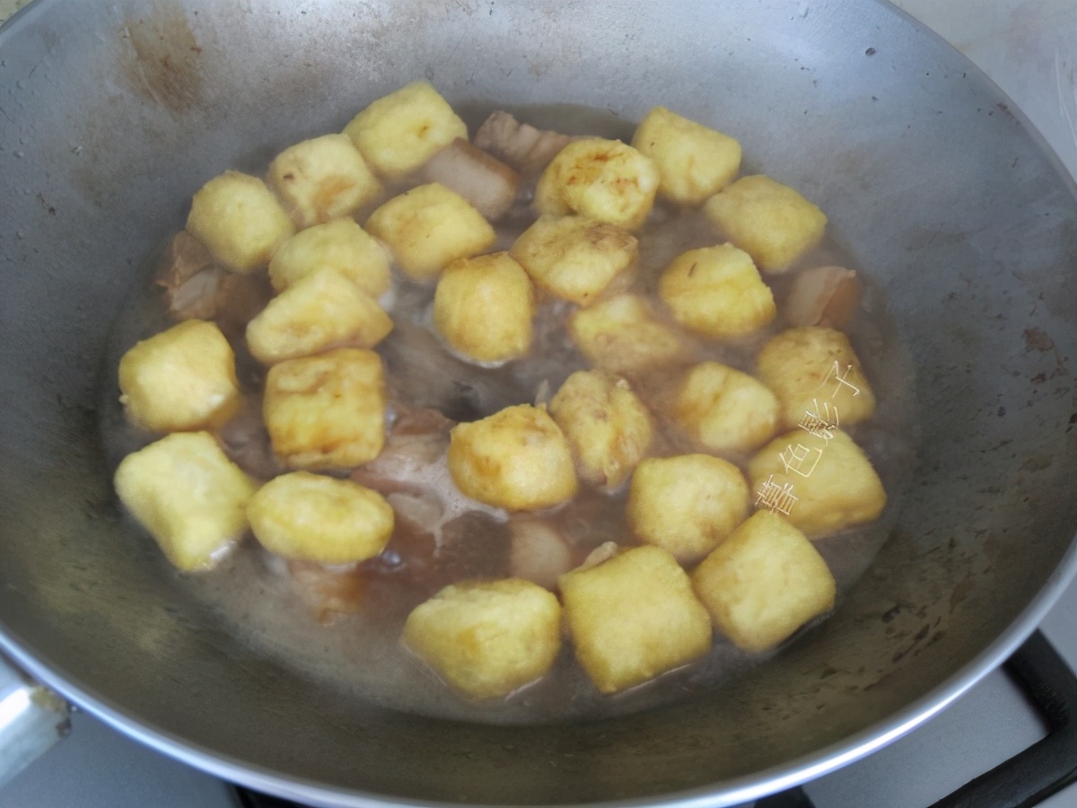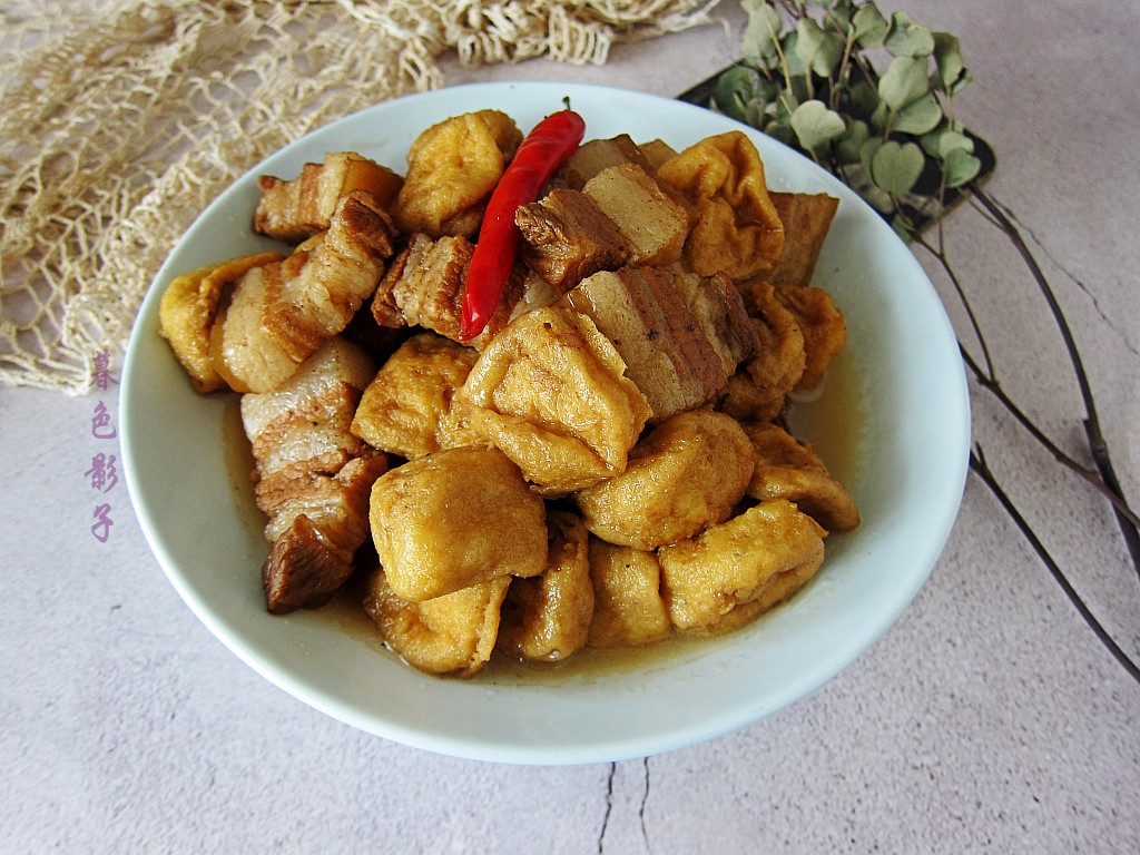 食谱;五花肉烧豆腐泡。食材;五花肉一块,豆腐泡适量,植物油1勺。红烧酱油1勺。料酒1勺。盐1勺。