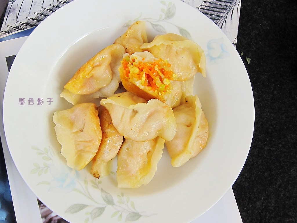食材:新鲜饺子粉800克,胡萝卜2个,鸡蛋4个,植物油适量,盐适量。