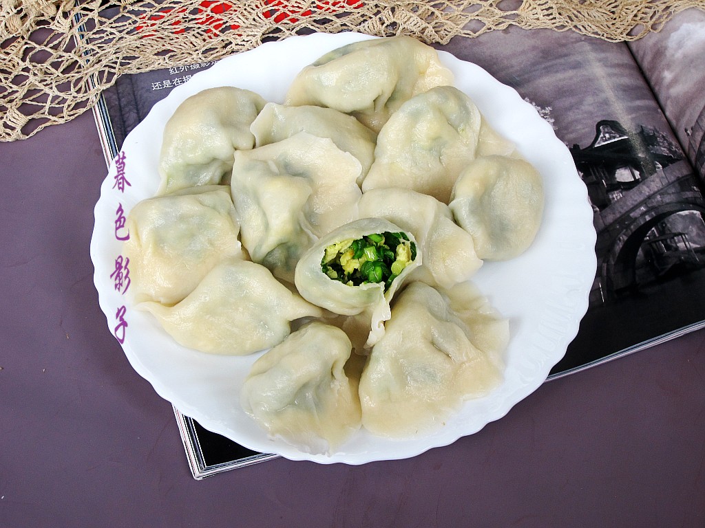 制作:1,新鲜荠荠菜洗干净控出水分,切碎做饺子馅。