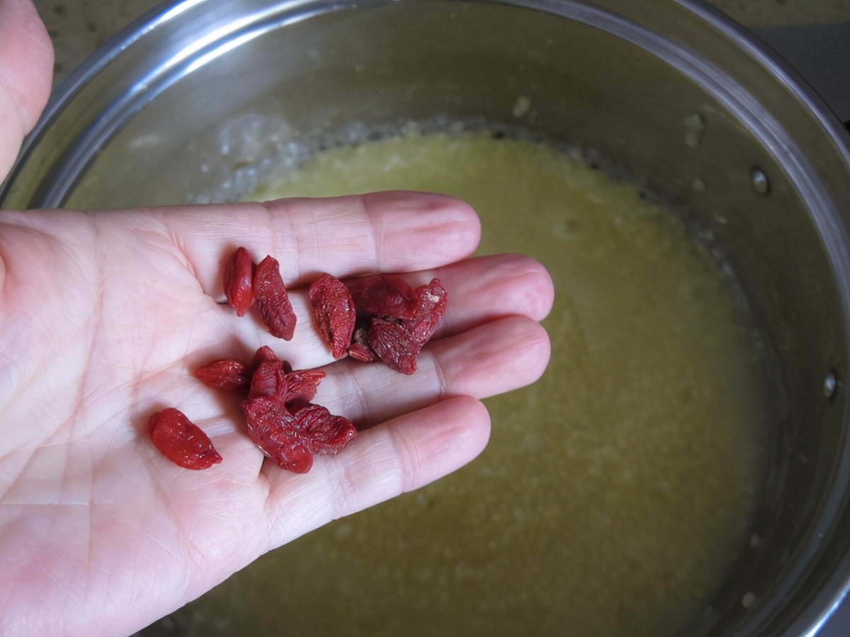 这时候可以加枸杞,如果先放进来一起煮枸杞就会变色了。口感可以就是看着颜值差很多了。要好看又好吃才行哈。