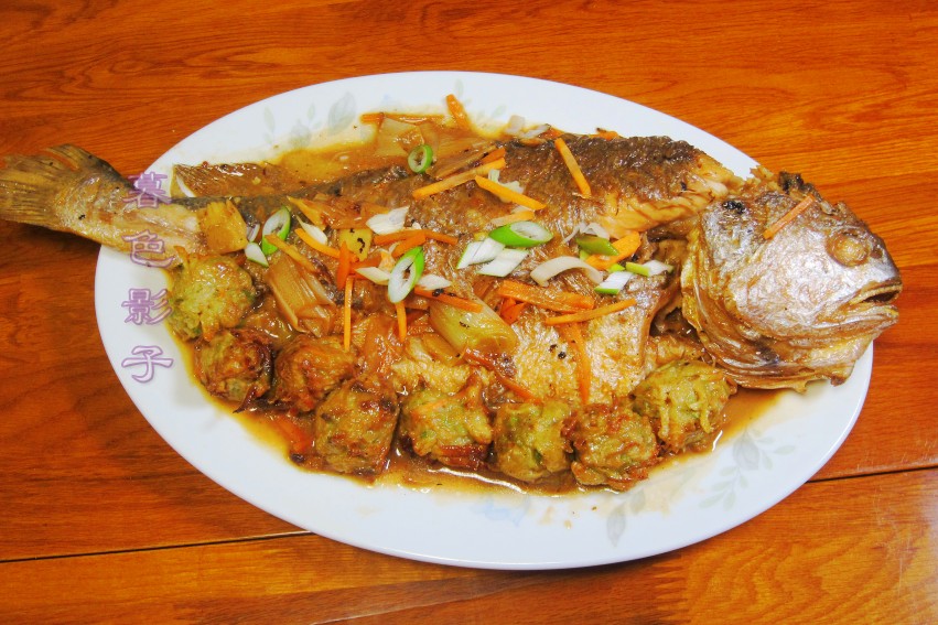 菜名;连年有余。红烧黄花鱼,比较清淡不油腻的菜,搭配上几个菜园子。