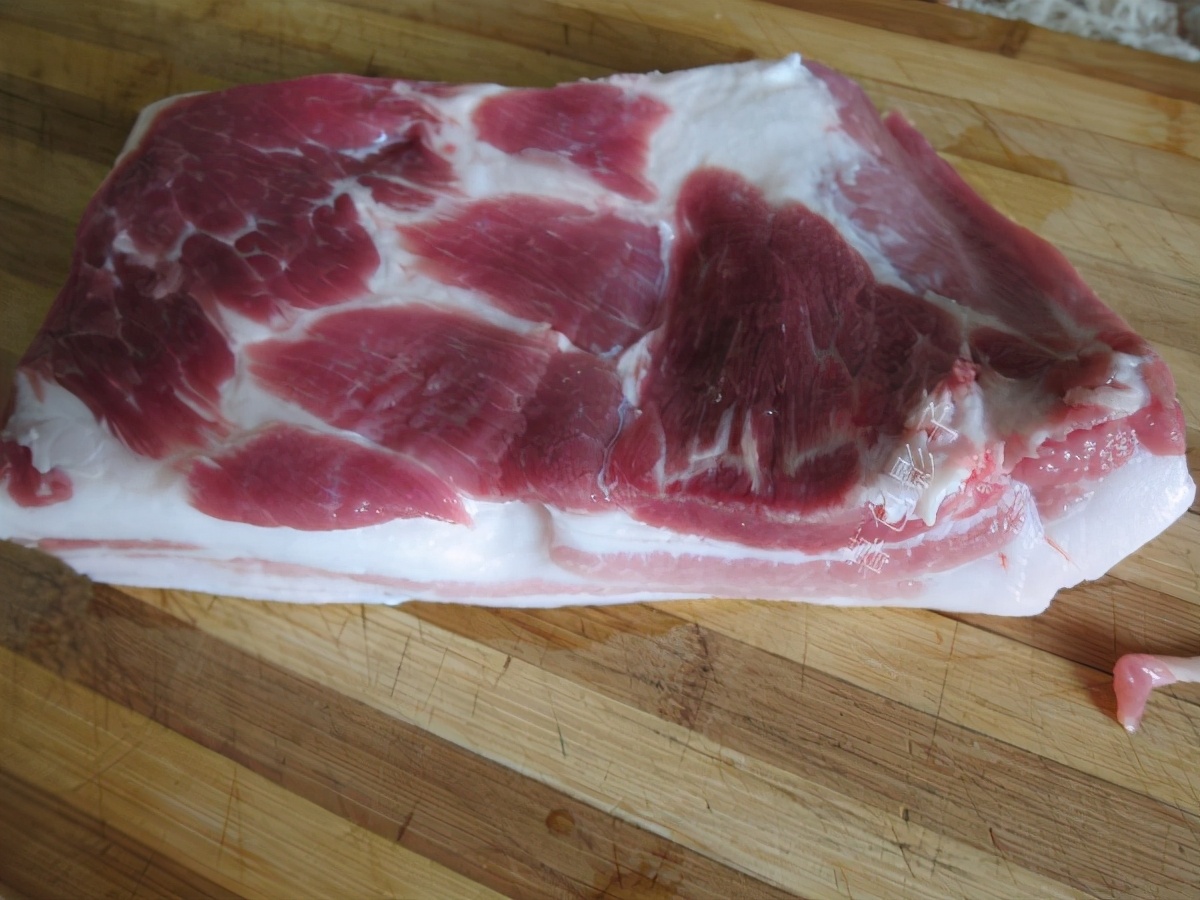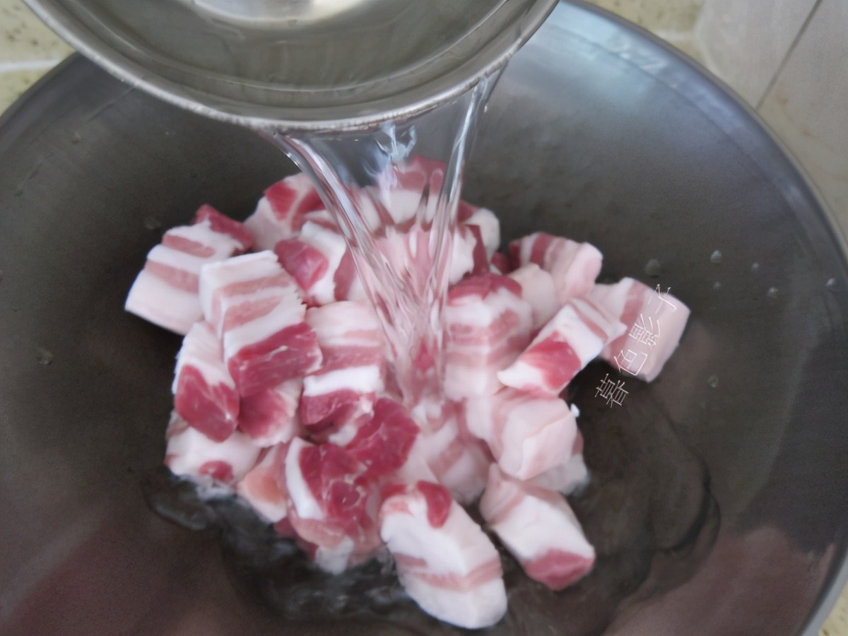 制作步骤;新鲜的猪前腿肉,也是比较瘦的肉,洗干净切成块。