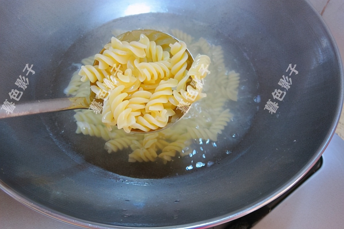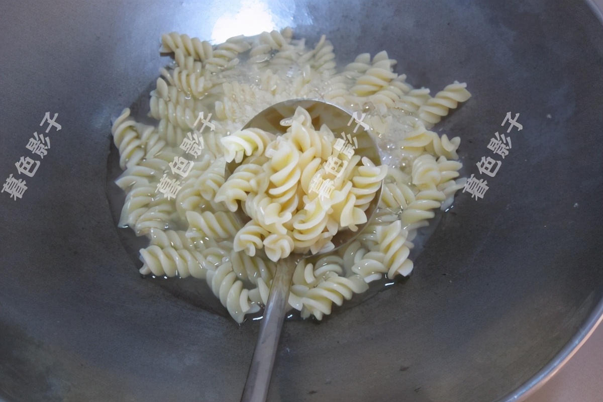 时间到了,意粉已经被煮得发白膨胀了,这就是煮好的意粉,口感软软地嚼起来很劲道。