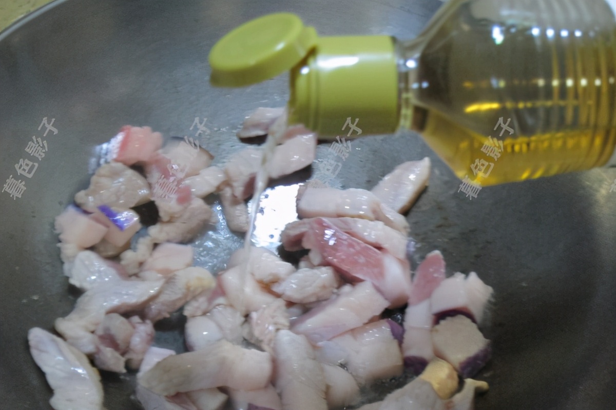 热油下锅炒猪肉,加适量的料酒去除腥腻味道。