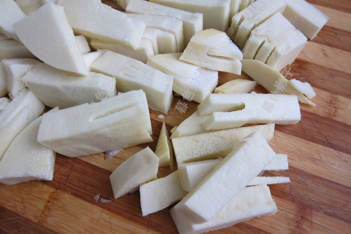 制作步骤;冬笋要先剥掉老皮,然后再切成块,1个冬笋将近4斤剥掉一多半。