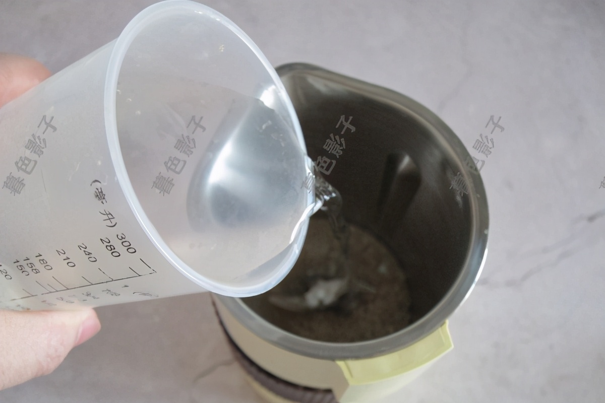 加清水至搅拌杯的刻度线,不要超过了。