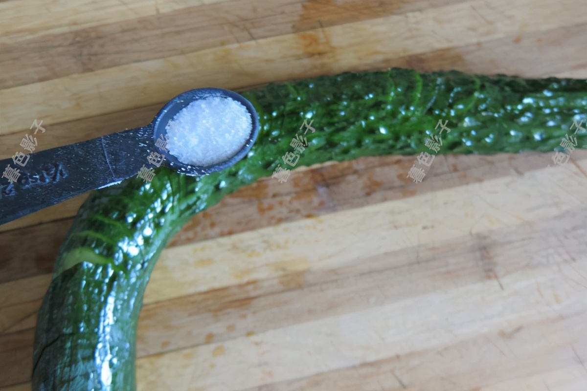 2,切好的黄瓜,先撒点盐,用手抹一下腌5分钟左右,再撒白糖也是抹一下。