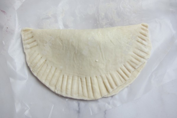 3,合起来饼皮,用叉子按压四边粘合在一起。