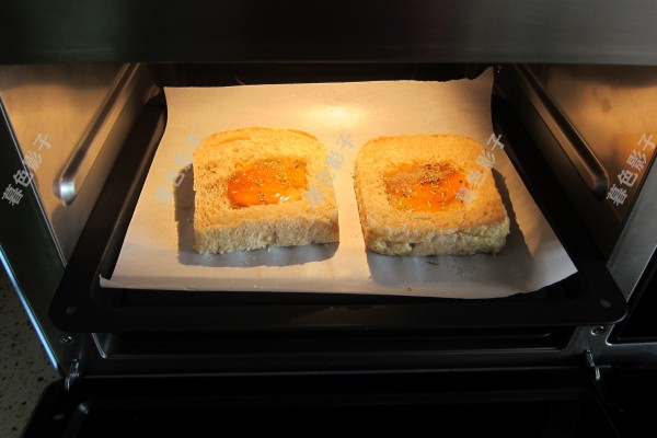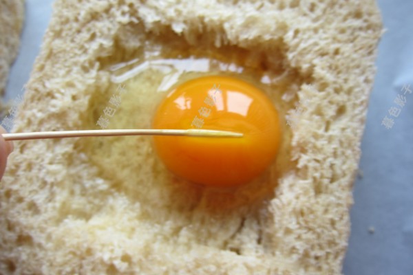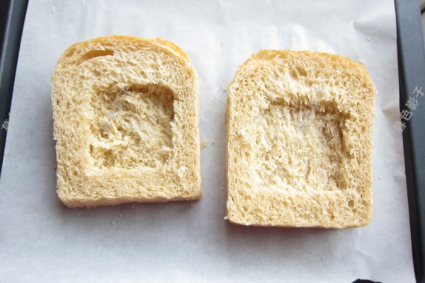 制作步骤;1,在切片的吐司中间挖个小坑,不要挖漏了。