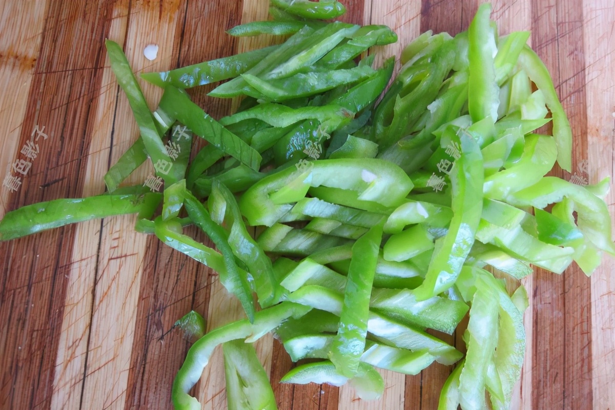 食材;猪肉1块,植物油1勺,尖椒2个,干豆腐1张,酱油1勺,盐1勺。