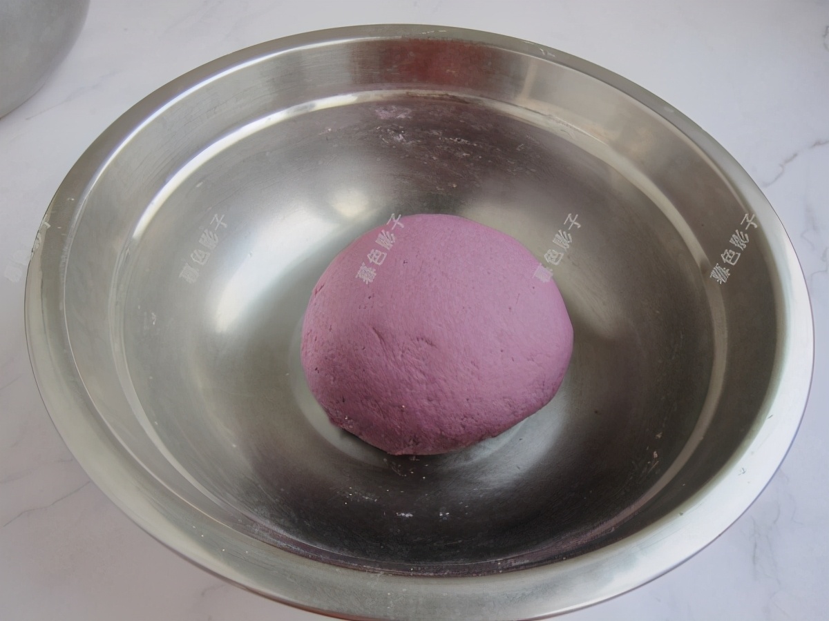 制作;紫薯粉和面粉混合在一起用清水和面,面团需要松弛20分钟左右,期间要揉面2次。