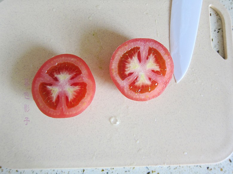 西红柿切开,有一半就够用了,也可按照自己的喜好制作。