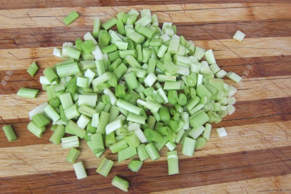 青蒜梗子也切碎了备用。