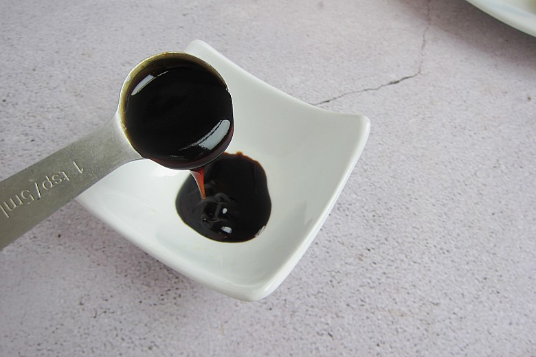 把蘸汁搭配好,个人喜欢清淡的,1勺蚝油,1勺10克轻盐原汁酱油。可按照自己的口味搭配。